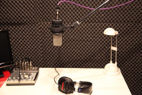 5.ナレーターは録音ブースに入ります。ディレクターはQUEボタン内蔵マイクでナレーターさんとお話ください。